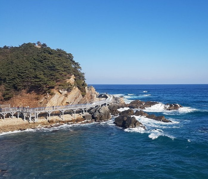 정동심곡 바다부채길은 아름다운 해안선을 따라 걷는 트레킹 코스로, 바다와 산의 경치를 동시에 즐길 수 있어 많은 관광객이 찾습니다. 해안 절벽과 푸른 바다가 어우러진 풍경은 감탄을 자아내며, 자연의 웅장함을 느낄 수 있습니다.