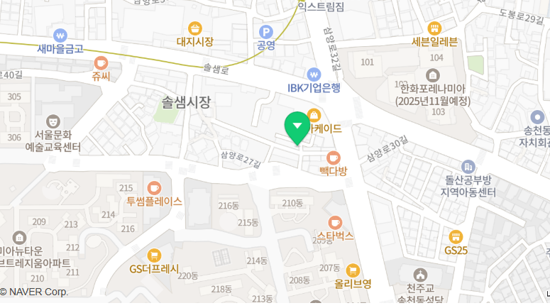 - 위치: 서울 강북구 도봉로 30 에코피아빌딩 1층 102호