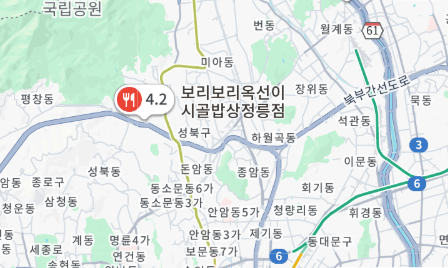서울 노원구 월계로55길 64에 위치한 '보리보리옥선이시골밥상'은 전통 한식의 깊은 맛을 느낄 수 있는 곳입니다. 특히 청국장과 보리밥 정식은 어른들에게 인기 많은 메뉴로, 푸짐한 반찬 구성과 넉넉한 양으로 만족감을 줍니다. 주차 공간이 마련되어 있어 부모님과의 방문에도 편리합니다