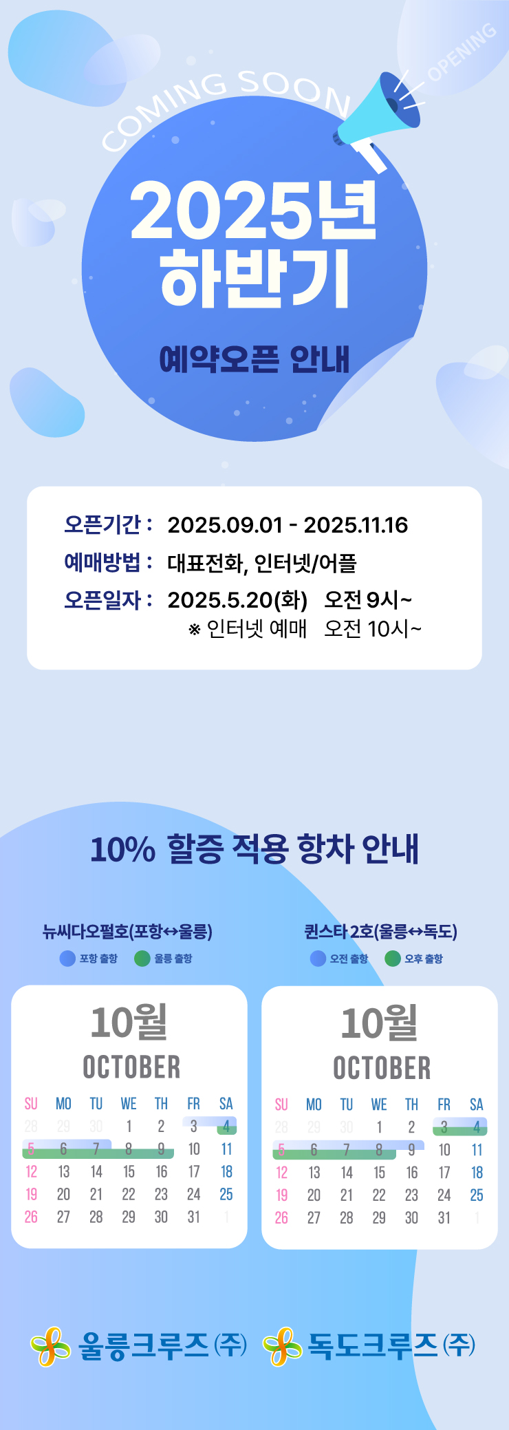 - 특징: 이코노믹·비즈니스·퍼스트 선자 분류, 우름도-독도 연계 이용 가능