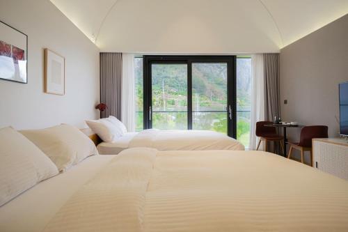 ‘자연과의 조화’를 콘셉트로 설계된 곡선미 건축물은 바다 절벽 위에 자연스럽게 놓여 있어, 그 자체로 작품이 되는 힐링 공간입니다.